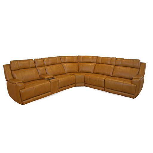 View full detailsCommand your living space with the ultimate in motion furniture: the Wrenley 6-Piece Top-Grain Leather Sectional. Available at Cleo’s Furniture, th...