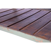 To complete its vintage-inspired look, the table is accented with hand-forged iron hardware, finished in a distressed, rust-colored tone that resembles a curated antique find. This isn't just a piece of furniture; it is a sturdy, high-character centerpiece designed to anchor your space and withstand the rigors of daily life.