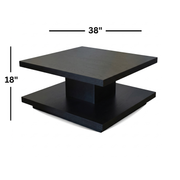 Command attention in your living room with the structural elegance of the Canyon Black Cocktail Table. This piece utilizes a stacked geometric profile to create a sense of depth and modern sophistication. The wide, thick square tabletop is perfectly balanced by a sturdy central pedestal, leading down to a matching lower shelf that offers expansive space for storage or decorative displays.