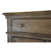 The architectural details of the Highland Park elevate it above standard storage pieces. It boasts beautifully shaped moldings and elegantly framed drawer fronts that add a sense of depth and weight to the design. Each drawer is accented with custom soft pewter knobs, providing a muted metallic contrast that perfectly complements the cool, organic tones of the driftwood finish.