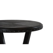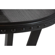 Add a touch of "modern frontier" character to your home with the Alamo Round End Table. Designed to complement both modern farmhouse and urban industrial interiors, this table features a circular wooden top finished in a versatile gray tone. The design is anchored by a solid metal frame and elevated by bold nailhead trim that wraps around the edge, providing a distinct tactile appeal. Compact enough to fit comfortably beside a sofa, armchair, or bedside, this table is as durable as it is stylish, offering a high-impact look that adds depth and texture to any room.