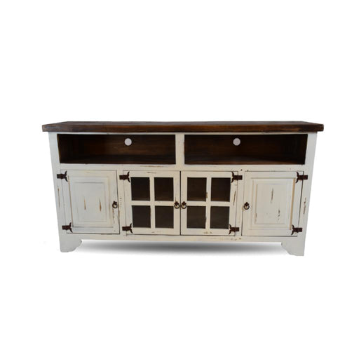 Bring the rugged charm of the frontier into your modern home with the White Distressed Montana TV Stand. Available at Cleo’s Furniture, this piece ...
