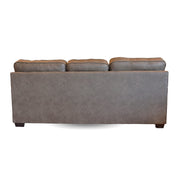The Renzo Brown Sofa is designed for those who appreciate the timeless look of leather with the easy-care benefits of modern materials. Dressed in a rich, dark brown upholstery with a subtle weathered texture, this sofa serves as a warm and inviting focal point for your living space. The silhouette is defined by comfortable box-border seat cushions and uniquely tufted back pillows that provide enhanced lumbar support and visual depth.