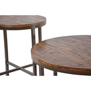 The "mixed media" appeal of the Sedona set lies in its contrast of materials. The tops feature a rich faux wood grain that radiates warmth and organic charm, providing a soft surface for books, drinks, or decor. This is balanced by the industrial strength of powder-coated iron legs, which offer a stable, long-lasting foundation with a sleek, matte finish.