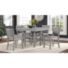 The refined rustic dining design of the Grayson Counter Dining Set elevates the look of everyday and special dining design with its combination of gray marble tops and distressed wood. With plenty of storage in the table base and fully upholstered Counter Chair offers a comfortable seat to continue the conversation long after desert has been served. Comfortable seating for six rounds out the transitional design that relaxes and elevates any dining area.