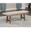 Rustic Ranch styling in a distressed finish with upholstered seat for added comfort. This bench is a full 60 inches in length, seats up to 4 people and features stretchers for extra strength. A driftwood finish and saw rasping distressing gives the bench a relaxed casual feel that is as comfortable on the plains as it is in the city.