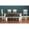 The Santa Rita dining chair comes with a traditional frame and a two toned design. The distressed look is very farmhouse chic and fits perfectly in your dining or kitchen. The Santa Rita collection is an amazing option if you are looking for Rustic furniture.