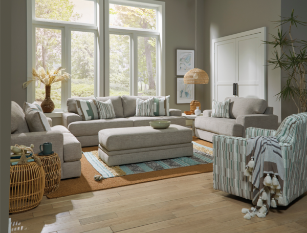Bring comfort and casual elegance to your living space with the Clash Sandstone Collection. Upholstered in a soft, neutral fabric and featuring plush cushions and stylish accent pillows, this group is perfect for both everyday lounging and entertaining.