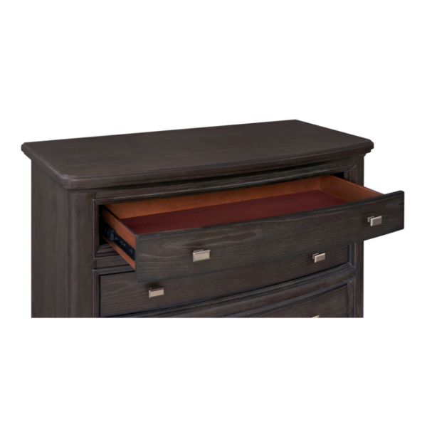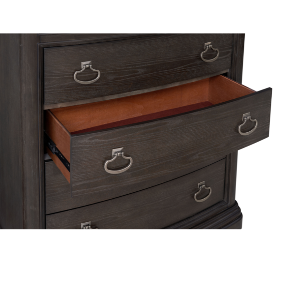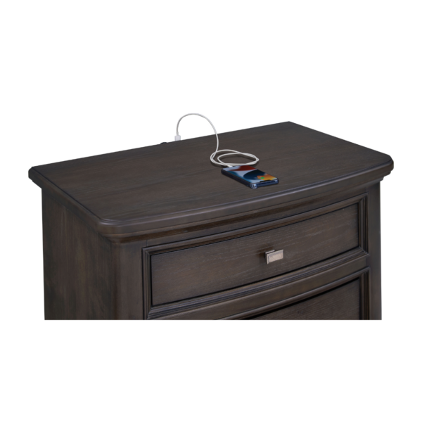The Caldwell Bedroom Group offers a perfect blend of classic elegance and modern functionality. Featuring a stately bed with an upholstered headboard and built-in storage, this collection exudes sophistication with its rich dark wood finish and refined molding details. The spacious chest, dresser, and nightstand provide ample storage with a mix of stylish metal hardware, while the coordinating mirror enhances the room’s depth and brightness. Designed for contemporary living, the nightstand includes built-in USB ports, LED lighting, and wireless charging capabilities. The Caldwell Bedroom Group brings timeless style and practical convenience to any bedroom.
