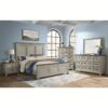 Whether you lean towards modern loft or farmhouse, the panel bed, nightstand, chest of drawers and dresser with mirror are the perfect look. The whitewash finish enhances the style with the stylish weathered look. You’re sure to find the retro-chic light sconces and slat style headboard to be a totally bright idea, while the metal drawer pulls elevate the aesthetic. What a delightful take on rustic industrial.