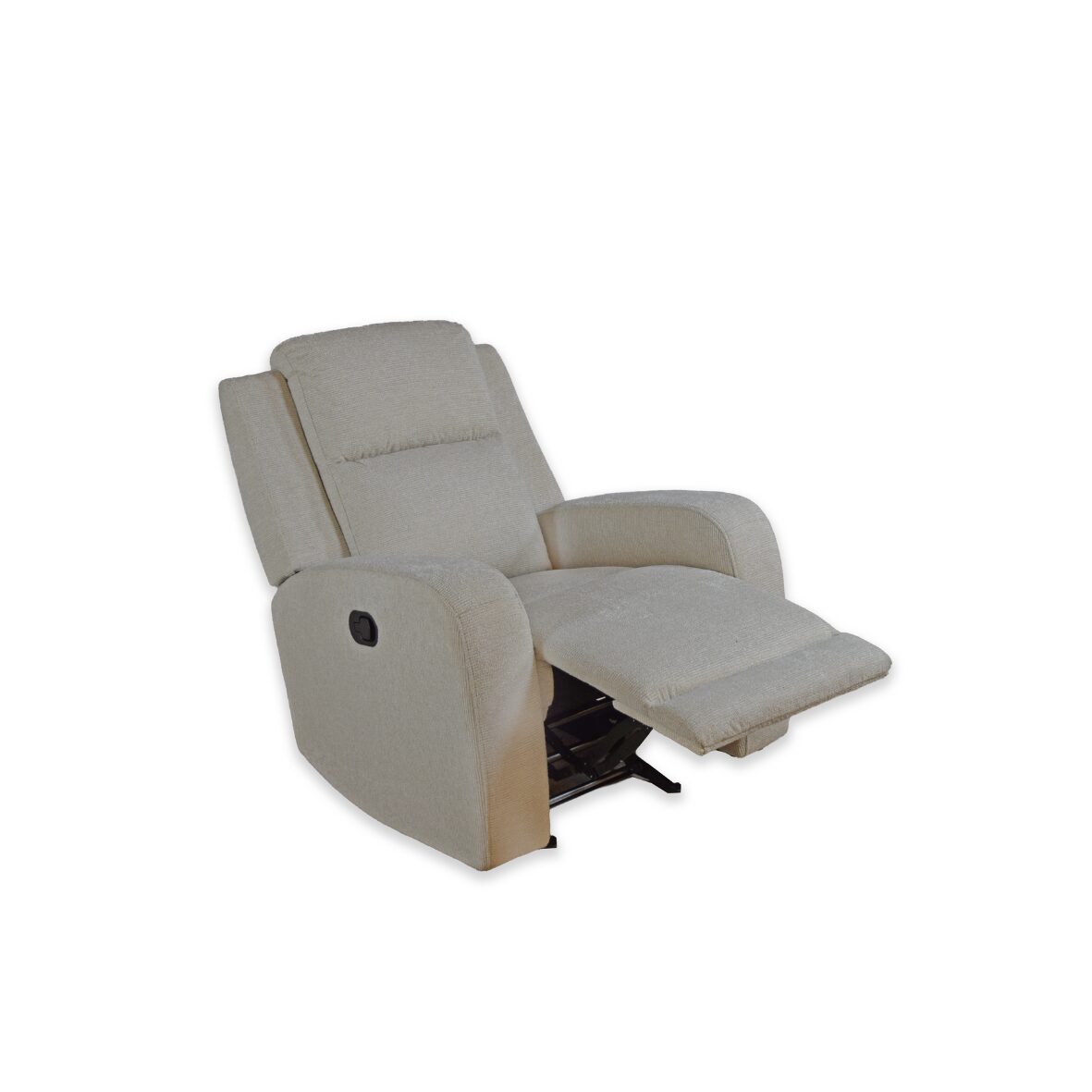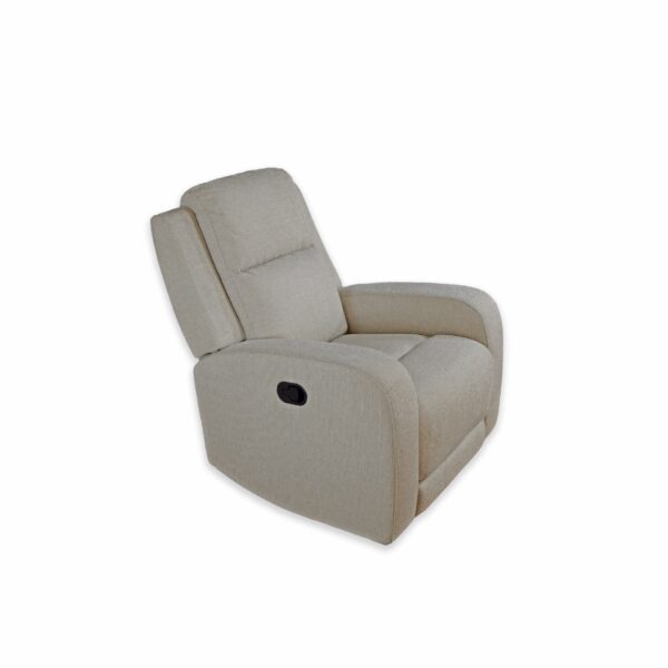 The Hyde Park Recliner Cloud a generously scaled, curved configuration that creates an inviting, theater-style seating experience. Upholstered in a soft, light neutral fabric, it has plush, segmented cushions and supportive high backs that emphasize comfort and contemporary styling.