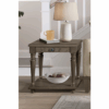 Simple, modern design elements with an industrial flair are found in the Arusha Occasional Collection. The end table is sturdily constructed of hardwood solids and mango veneers in a beautiful medium cherry finish with metal bracket accents. A bottom shelf provides extra space for storage or display.
