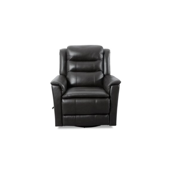 The Leather Madrid Granite Swivel Glider Recliner features rich leather upholstery with a smooth, slightly glossy finish that gives it a refined, cozy look. Generously padded cushions, a tiered backrest, and plush armrests provide excellent support and comfort for extended lounging. A discreet side-mounted lever allows for easy reclining, while the sturdy base enables smooth swiveling and gentle gliding motion. With its clean lines and substantial silhouette, this recliner balances classic style with everyday relaxation.