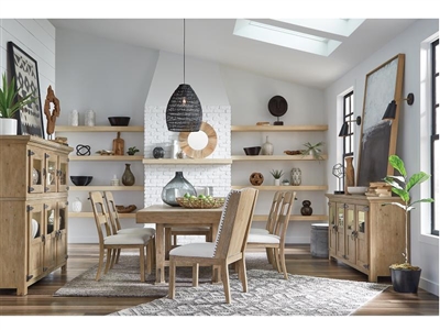 Dimensions: (Dining Table) 78 x 42 x 30, (Side Chair) 19 x 23 x 39.5, (Upholstered Bench) 48 x 16 x 19, (Server) 52 x 18 x 38.