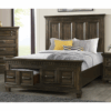 The McCoy King Storage Bed will look fantastic in your bedroom! The high profile headboard features an inset panel design, while the footboard comes with storage drawers perfect for storing away extra bed linens or blankets. Beautiful details such as bevel edges and dental molding along the top front edges are featured throughout the headboard and footboard. This bed is finished in a smoky walnut and makes it a perfect bedroom staple for years to come.