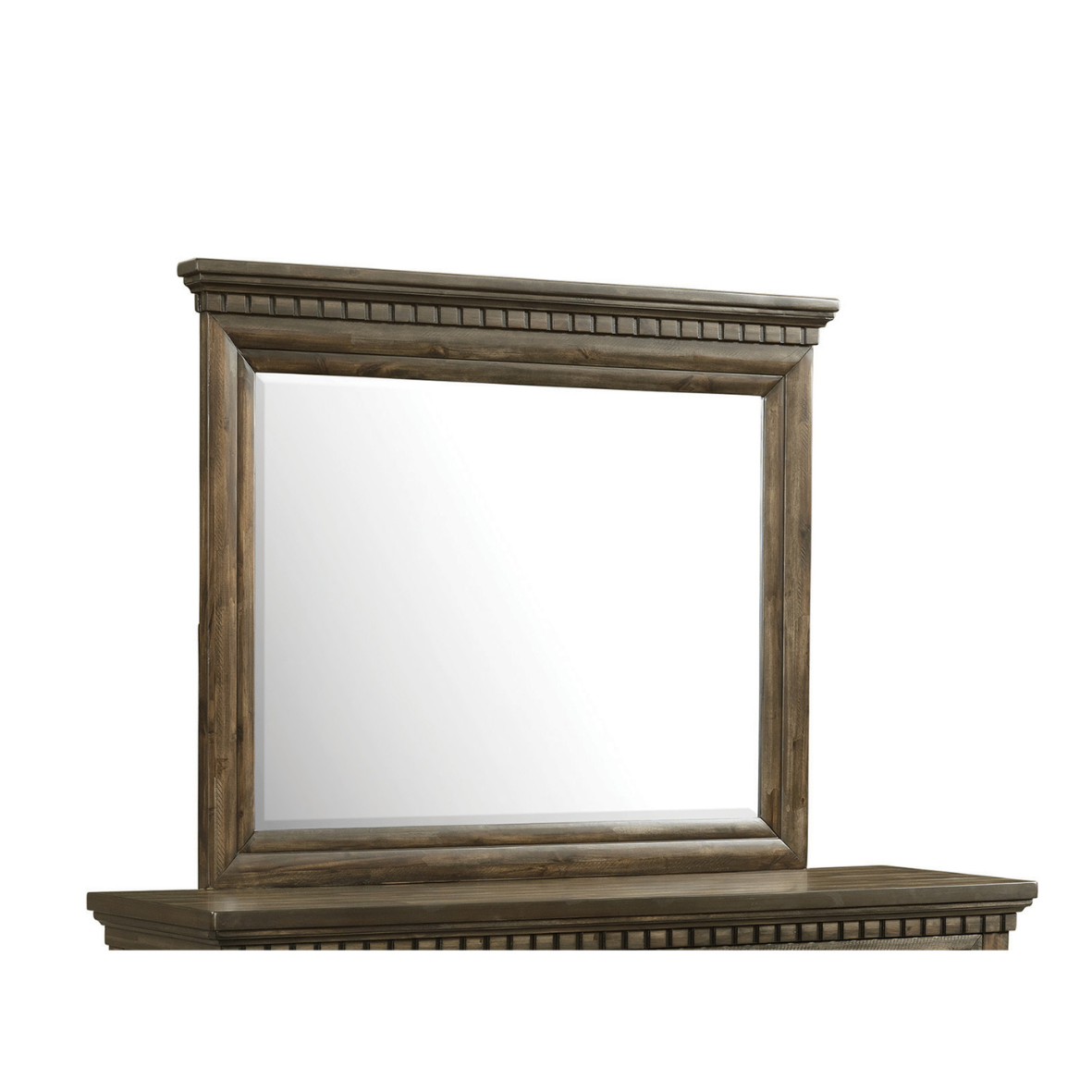 The Highland Park chest features vintage styling in a classical bedroom collection. Sturdy construction using hardwood solids and veneers in a multi-step waxed driftwood finish with the perfect amount of distressing. Beautiful shaped moldings and framed drawer fronts accented by soft pewter drawer knobs, create an elegant farmhouse style.