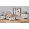 Transform your bedroom into a serene retreat with the Austin Bedroom Group. This set includes a beautifully crafted bed with a sturdy headboard featuring integrated lighting, a spacious dresser with a matching mirror, a tall chest of drawers, and a convenient nightstand. Each piece boasts a rustic white finish that highlights the natural wood grain, paired with sleek black hardware for a touch of modern elegance. The soft, neutral palette effortlessly complements any decor style, creating a cohesive and inviting space. Upgrade your bedroom with the Austin Bedroom Group for a blend of comfort, functionality, and timeless design. Dimensions: (King Bed) 82 x 82 x 74, (Queen Bed) 66 x 82 x 70, (Dresser) 68 x 21 x 44, (Mirror) 48 x 3 x 37, (Chest) 42 x 21 x 58, (Night Stand) 30 x 19 x 30. *For a limited time only, save $302 on the Austin Chest, save $302 on the Austin Dresser. *For a limited time only, with the Purchase of the Austin Dresser get the Austin Mirror for Free.