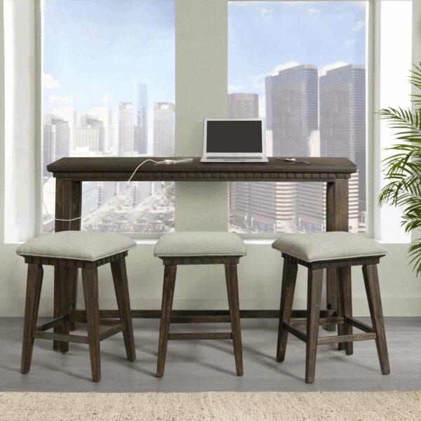 The Morrison Multipurpose Bar Table Set is the ultimate set for your home! This set can be placed anywhere in your home, from a kitchen nook to a spot behind the sofa in the living room. Keeping your devices charged while you work wont be a problem, thanks to the USB ports and power strip located on the side of the table. The barstools comes with an upholstered, foam cushion seat; making it easy to watch your favorite TV shows while you work without having to completely rearrange the couch to get you setup to finish up extra work. The dark walnut finish, with cherry undertones will pair perfectly with any existing decor you have. Say goodbye to having to haul your work to your local coffee shop and hello to the Morrison Multipurpose Bar Table Set!