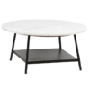 The Banyan White Marble Top Coffee Table combines elegance and functionality with its smooth white marble round tabletop and sturdy black metal base. The lower perforated metal shelf adds a modern touch and provides extra storage or display space, making it perfect for contemporary living spaces.