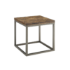 Simple, modern design elements with an industrial flair are found in the Arusha Occasional Collection. The end table is sturdily constructed of hardwood solids and mango veneers in a beautiful medium cherry finish with metal bracket accents. A bottom shelf provides extra space for storage or display.
