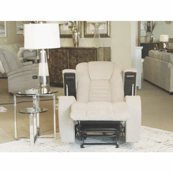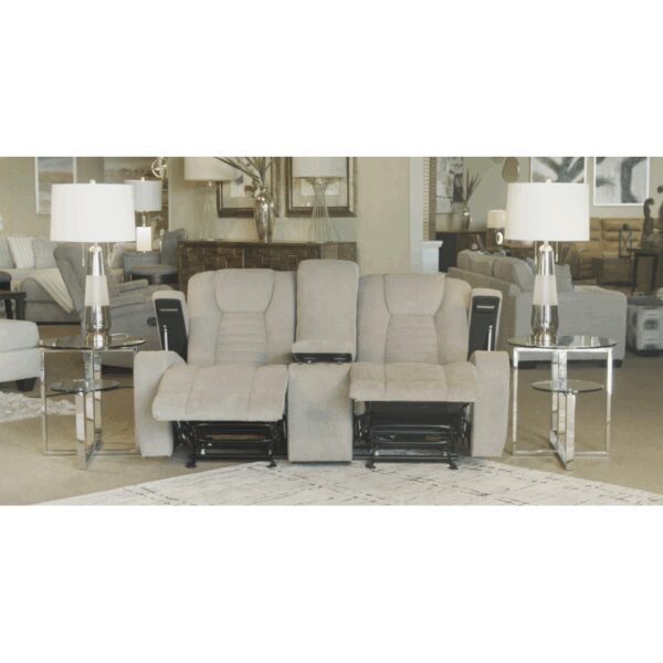 Relax in modern comfort with the Vienna Taupe Living Room Group. This collection combines sleek design with plush support. The reclining sofa features a convenient drop-down table with built-in lighting, while the matching console loveseat and recliner offer cupholders and storage for added convenience. Perfect for movie nights or everyday lounging, the Vienna brings contemporary style and functionality to your home.