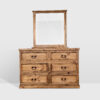 The Pinnacle Dresser combines classic elegance with contemporary functionality. Crafted from durable wood with a distressed finish, it showcases the natural grain and adds a touch of rustic charm. This dresser offers ample storage with multiple drawers, adorned with elegant hardware. Topped with a large, beautifully framed mirror (sold separately), the Pinnacle Dresser enhances both the style and practicality of your bedroom, making it a perfect blend of luxury and convenience.