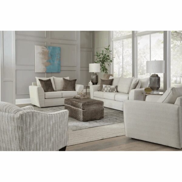 The Winslow Living Room Group offers a perfect blend of comfort and contemporary elegance. With soft, neutral-toned upholstery, this collection creates a serene and inviting atmosphere in your home. The plush cushions and supportive seating provide exceptional comfort, while the included accent pillows and ottoman add a touch of style. The Winslow set is ideal for those seeking a cozy yet modern living room setup that complements a wide range of decor styles.
