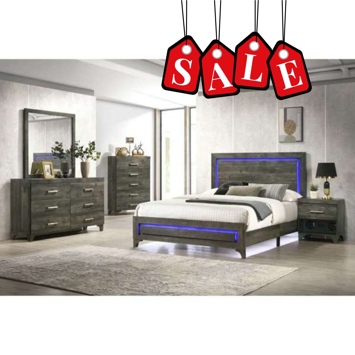 Introducing the Zendaya Bedroom in Grey, a perfect blend of modern design and innovative technology. This stylish set includes a queen bed, dresser, mirror, chest, and nightstand, all crafted with a sleek grey finish that adds a contemporary touch to any bedroom. The standout feature of this set is the integrated LED lighting in the headboard and footboard, creating a cozy and ambient atmosphere. The nightstand is equipped with a built-in Bluetooth speaker, seamlessly combining functionality with entertainment. The Zendaya Bedroom Set not only offers ample storage with its spacious drawers but also ensures durability and sophistication. Elevate your bedroom decor with this modern and tech-savvy furniture set, designed to bring both comfort and style to your living space.